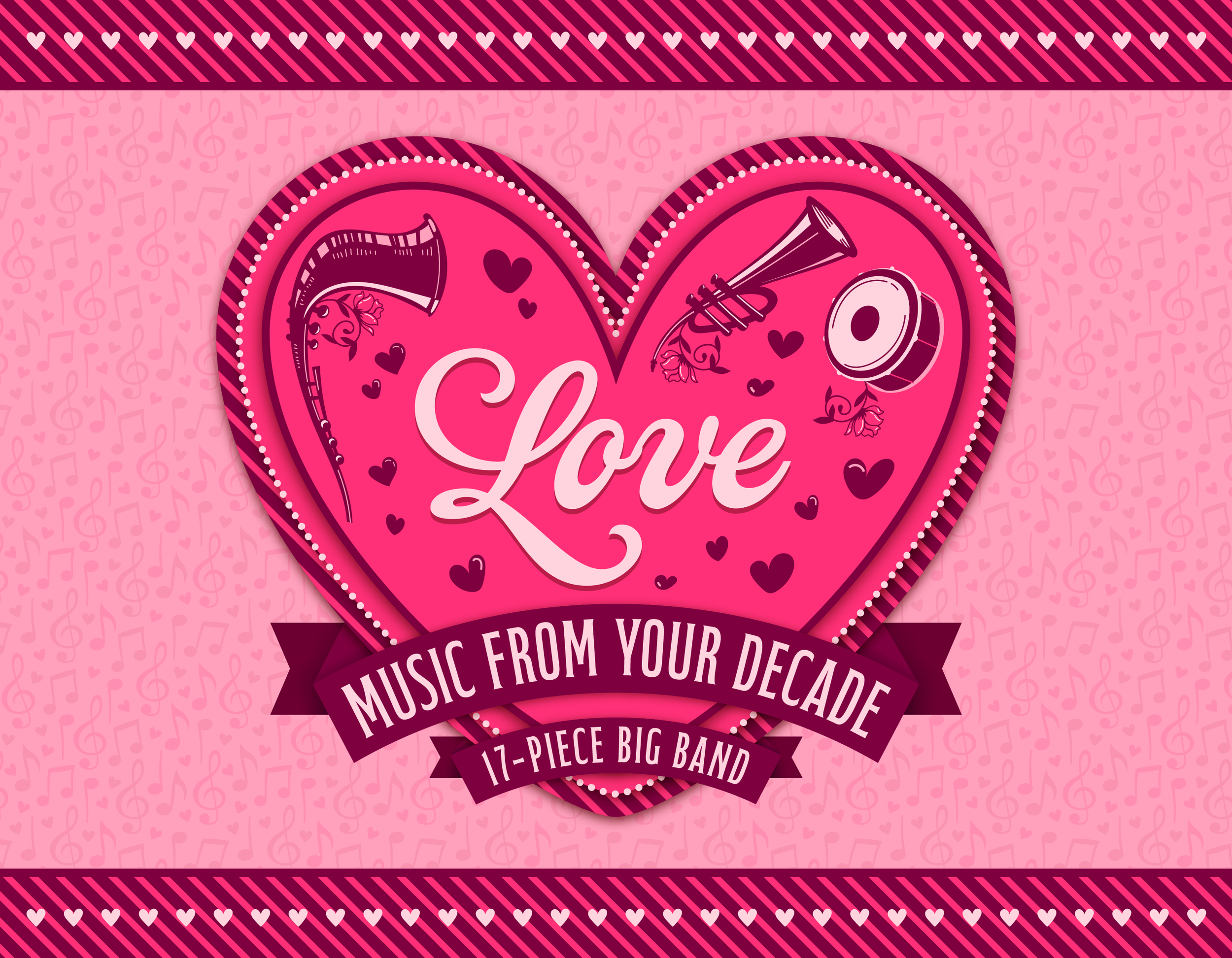 Love Music From Your Decade brings the romance of the big band era to life. Enjoy an unforgettable evening with a full 17-piece big band and two captivating vocalists, performing the timeless love songs you grew up with and still cherish.